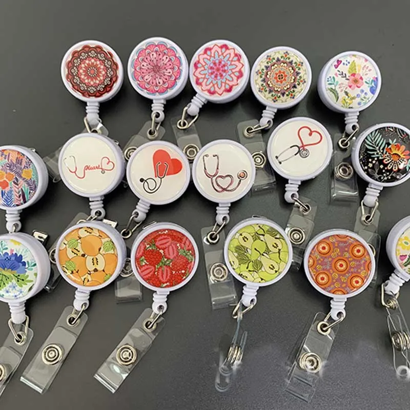 Name: Soporte para carrete de insignia de flores, Clip retráctil para tarjeta de identificación con Clip de cocodrilo giratorio 360, novedad, 1 unidad